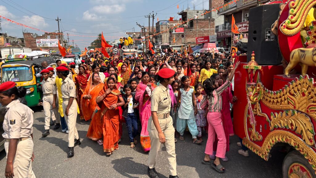 एनएच-27 किनारे स्थित रामजानकी ठाकुरबाड़ी सह बड़ी दुर्गा मंदिर परिसर से मनीष भगत की अध्यक्षता में निकली इस शोभा यात्रा में हजारों की संख्या में महिला-पुरुष श्रद्धालु शामिल हुए। माथे पर भगवा पाग, ललाट पर चंदन और हाथों में भगवा ध्वज लिए श्रद्धालुओं की टोली जब नगर भ्रमण पर निकली, तो पूरा क्षेत्र “जय श्री राम” के उद्घोष से गूंज उठा। पूरे दिन नगर गेरुआ रंग में रंगा नजर आया।