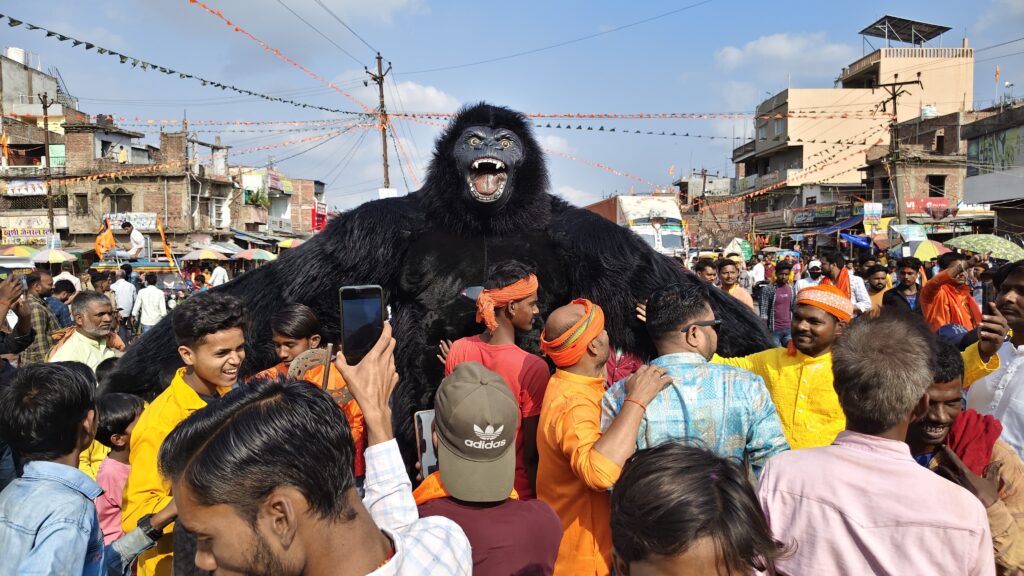 विशेष रूप से गोरिल्ला थीम पर आधारित झांकी बच्चों और महिलाओं के बीच खासा लोकप्रिय रही। ढाक की धुन पर थिरकते श्रद्धालुओं ने पूरे माहौल को उत्सवमय बना दिया।